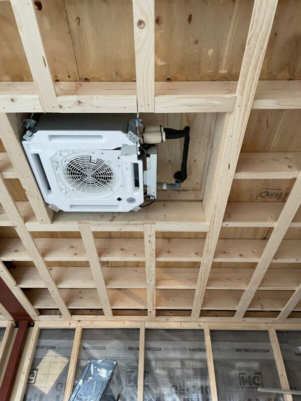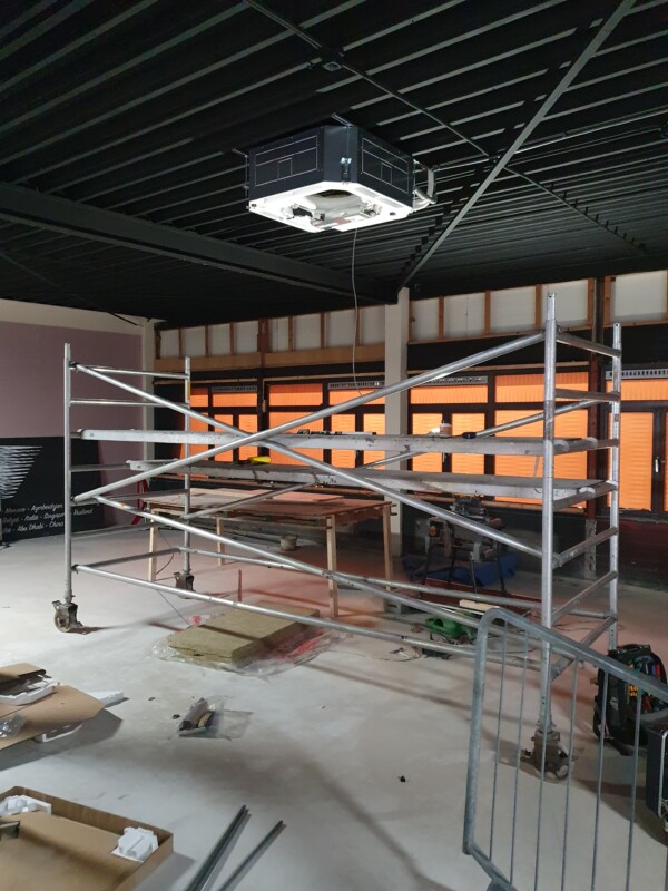 In de laatste week voor de kerstvakantie hebben onze monteurs alvast de voorbereidingen getroffen m.b.t. de plaatsing van een MITSUBISHI H.I. inbouw cassette airconditioning. In het verlaagde plafo…
